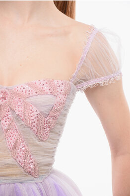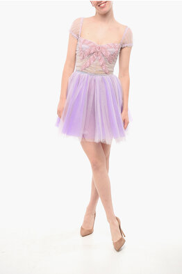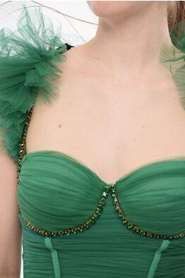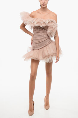 Tulle One-Shoulder Mini Dress with Ruffle Details