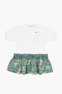 Short-Sleeve Tee Dress with Printed Skirt