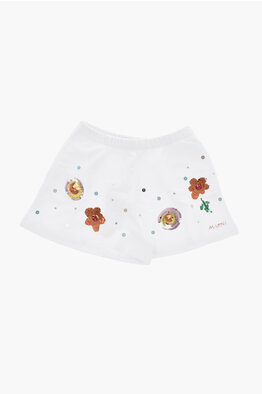 Solid-Color Brushed Cotton Shorts with Sequin Details