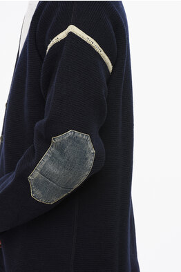 MM1 V-Neck Wool Cardigan with Denim Patches