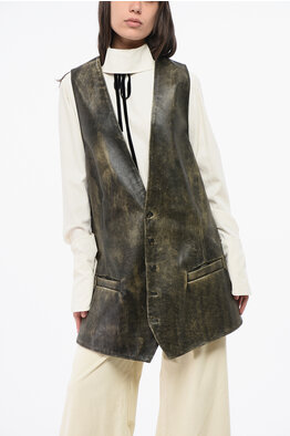 MM6 V-neck Leather Maxi Jacket