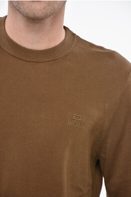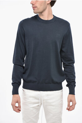 Cotton Crewneck Sweater with Embossed Logo