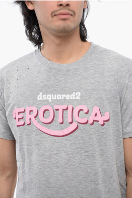 Distressed Effect Cool Fit Brushed Cotton Crewneck Sweater