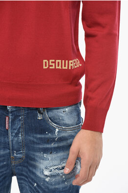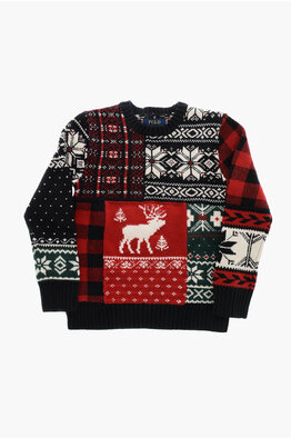 Crewneck HOLIDAY Wool-Blend Sweater Embroidered All-Over