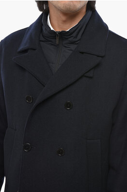 CC COLLECTION Flap Pockets Virgin Wool Coat with Chest Piece Removible