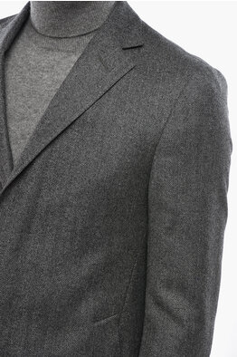 CC COLLECTION Herringbone Motif Virgin Wool Coat