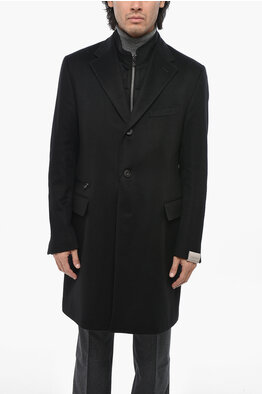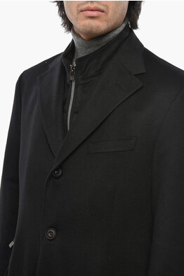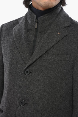 CC COLLECTION Wool and Cashmere Single Breasted Coat with Removable Chest Piece