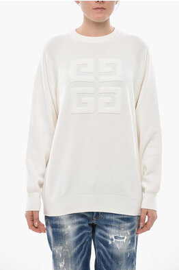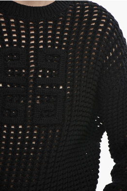 Cashmere-Blend Crochet Sweater with Jacquard Logo