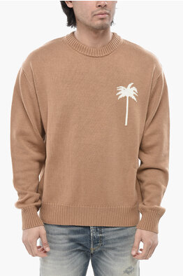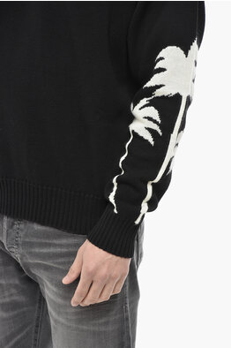 Cotton-Blend Crewneck Sweater PALMS With Jacquard Details