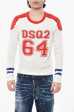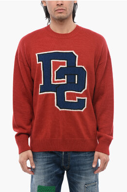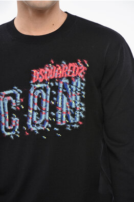 Crewneck Wool Sweater with All-Over Logo