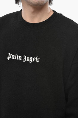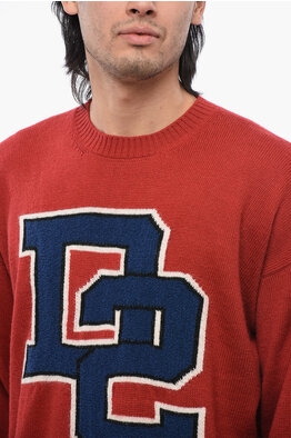 Crewneck Virgin Wool Sweater with Flocked Logo