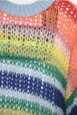 Fuzzy Mixed Mohair Sweater with Striped Detail
