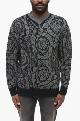Virgin Wool Crewneck Sweater with Baroque Pattern
