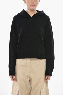 Virgin Wool Sweater with Hood and Kangaroo Pocket