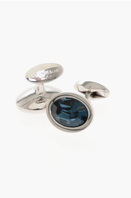 Polished Metal Cufflinks with Crystal Embellished Inserts