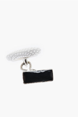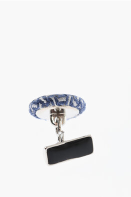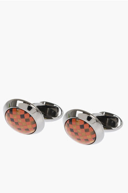 Metal Cufflinks Lined With Embroidered Silk