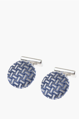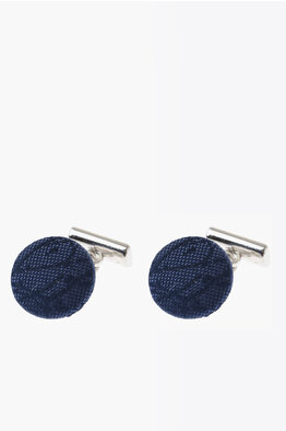 Metal and Silk Round Cufflinks