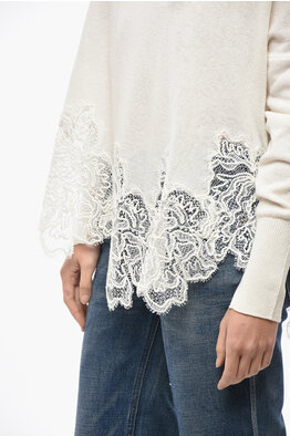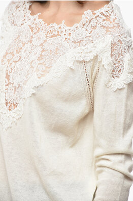 Cashmere Blend Sweater with Lace Embellishment