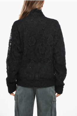Turtleneck Cashmere Blend Sweater with Lace Detail