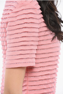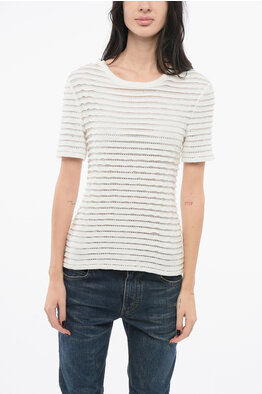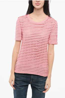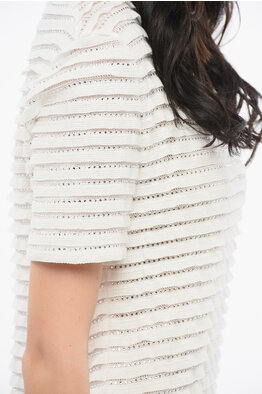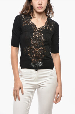 Short-sleeved Cashmere Blend Sweater with Lace Detail