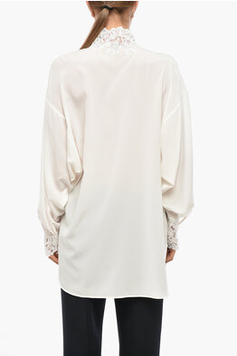 Silk Shirt with Embroidered Collar