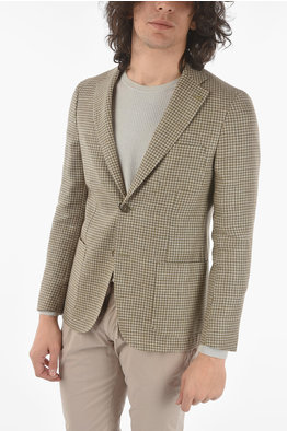 plaid flax and virgin wool side vents notch lapel 2-button blazer