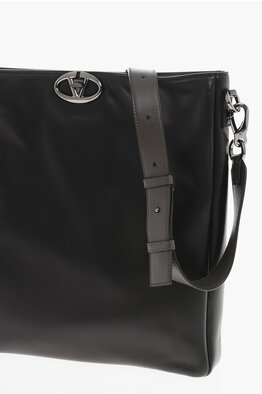 Tote-Bag aus Leder und Canvas mit abnehmbarem Schulterriemen