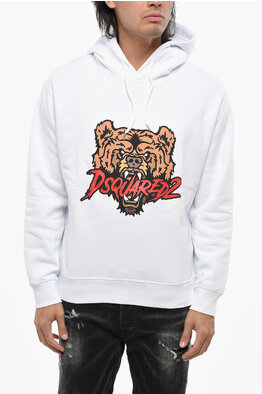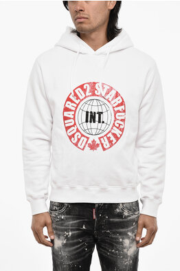 Fleeced-Cotton Sweatshirt with Maxi Frontal Print