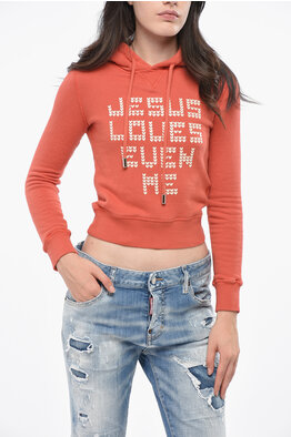 RED TAG Brushed Cotton F-SLIMMY Cropped Hoodie with Flocked Logo