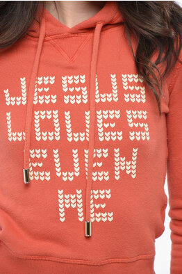 Cropped Fit F-SLIMMY-P6 Hoodie with Metallic Effect Print