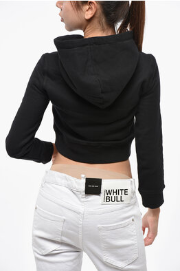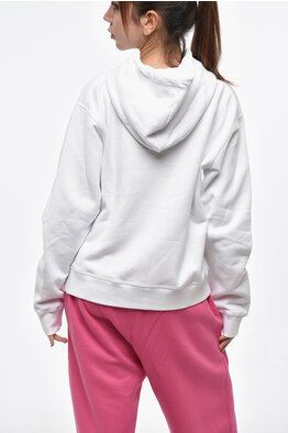 Fleeced Cotton Cropped Hoodie with Contrasting Logo