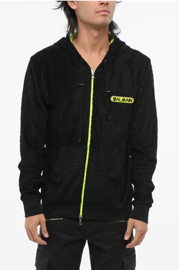 Velvet Sweatshirt with All-Over Monogram and Fluo Details