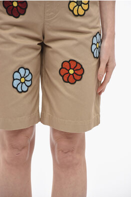 JW ANDERSON Coated Cotton Bermuda Shorts with Crochet Patches