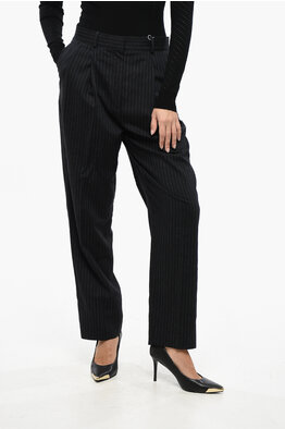 High Waist Pinstriped Double Pleat Pants