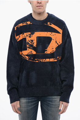 RED TAG Rundhals-Pullover aus Velours K-TRIA mit frontalem Monogramm