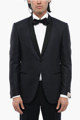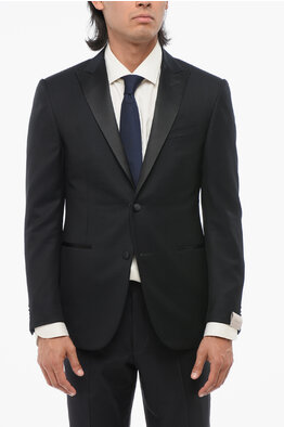 Wool Blend Center Vent Peak Lapel Double-Breasted Blazer