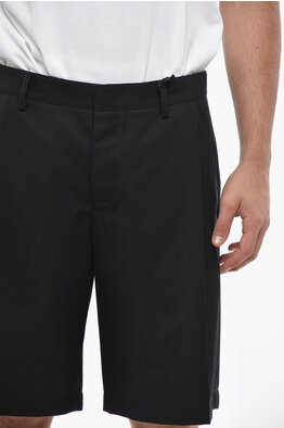 Single-Pleated Cotton Blend Shorts