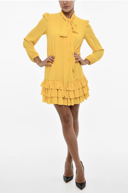 Flared Dress with Frill and Tie Neck