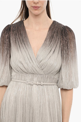 Metallic V-Neck Tunic Dress with Belt