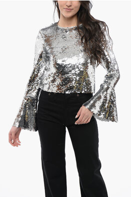 Sequined Cropped Top with Bell Sleeves