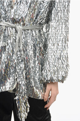 Wrap Dress with Leave-shaped Sequines All-Over