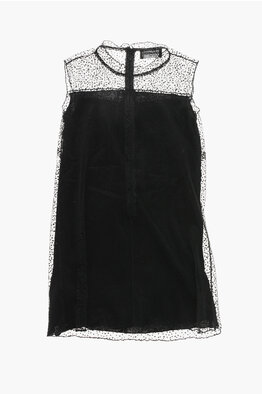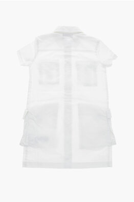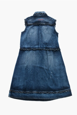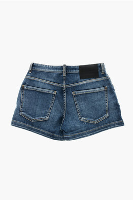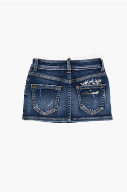 Stretch Denim Skirt with Metal Logo and Floral Embroidery