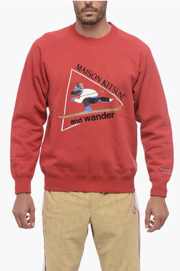 MAISON KITSUNE' Fleeced Cotton Crew-neck Sweatshirt with Frontal Print