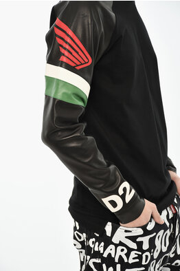 Baumwoll-Rundhals-T-Shirt Mit Lederärmeln