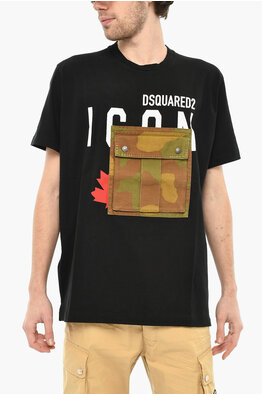 Rundhals-T-Shirt Aus Baumwolle Mit Fronttasche Im Camouflage