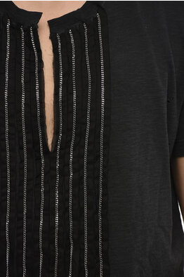T-Shirt mit Rundhalsausschnitt, Fransen und Kettendetails