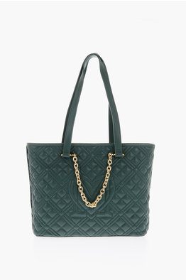 LOVE Faux Leather Quilted Tote Bag with Golden Details