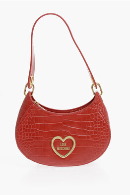 LOVE Crocodile Effect Faux Leather Hobo Bag with Golden Heart