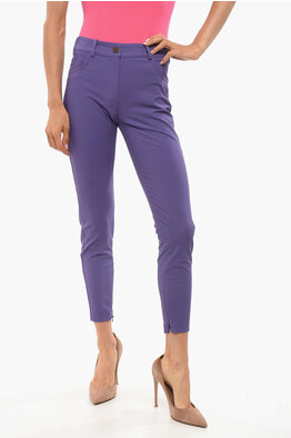 Cropped Fit Stretch Fabric Pants with 5-Pockets