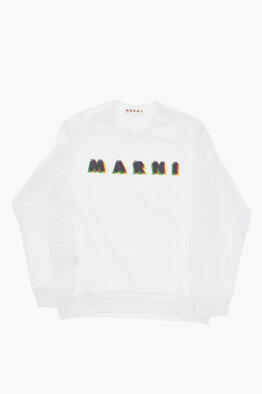 Brushed Cotton Crew-neck Sweatshirt with Printed Logo